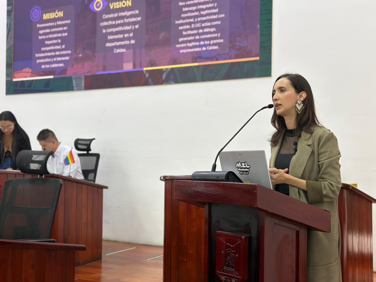 La directora ejecutiva del Comité Intergremial de Caldas, Mónica Londoño Arango, presentó ante el Concejo de Manizales el enfoque, los programas y las líneas estratégicas de la organización que articula a distintos sectores productivos del departamento. Durante su intervención explicó que el comité trabaja bajo principios de diálogo, consenso y análisis técnico, y que el encuentro con los concejales permitió compartir su misión, visión, valores y herramientas como la biblioteca digital, además de escuchar aportes en temas como infraestructura, desarrollo social y fortalecimiento de la relación público-privada con la Alcaldía y el Concejo de la ciudad.