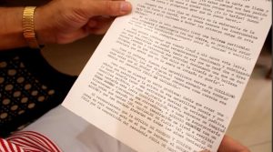 El documento escrito por Juan Marí Asins, en las manos de su hijo Pedro