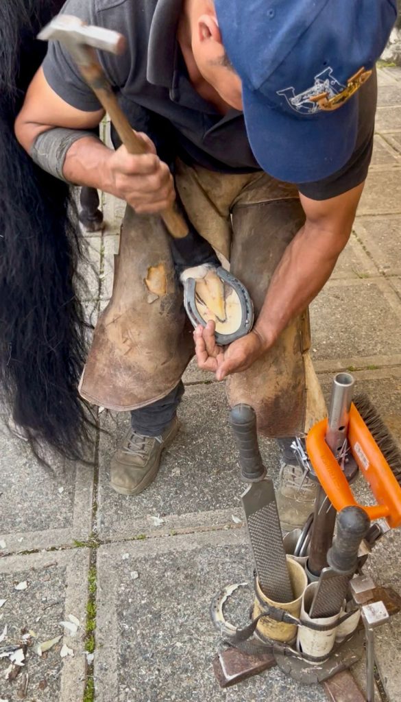 Su trabajo es constante. Cada 35 o 45 días, los caballos requieren mantenimiento. El casco crece, cambia, exige atención. Por eso, Julián no necesita buscar clientes: ellos lo buscan a él. Lo llaman a criaderos, a fincas, a ferias.